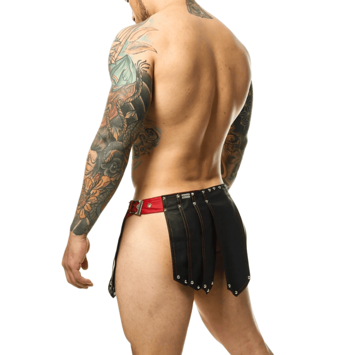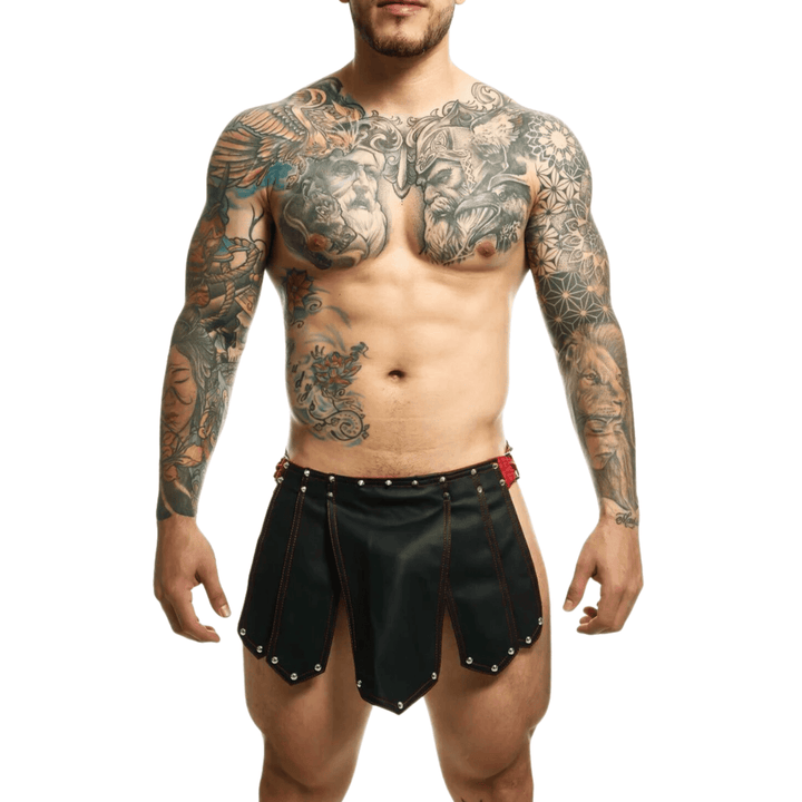 Men’s Genuine Black Leather Gladiator Kilt Skirt